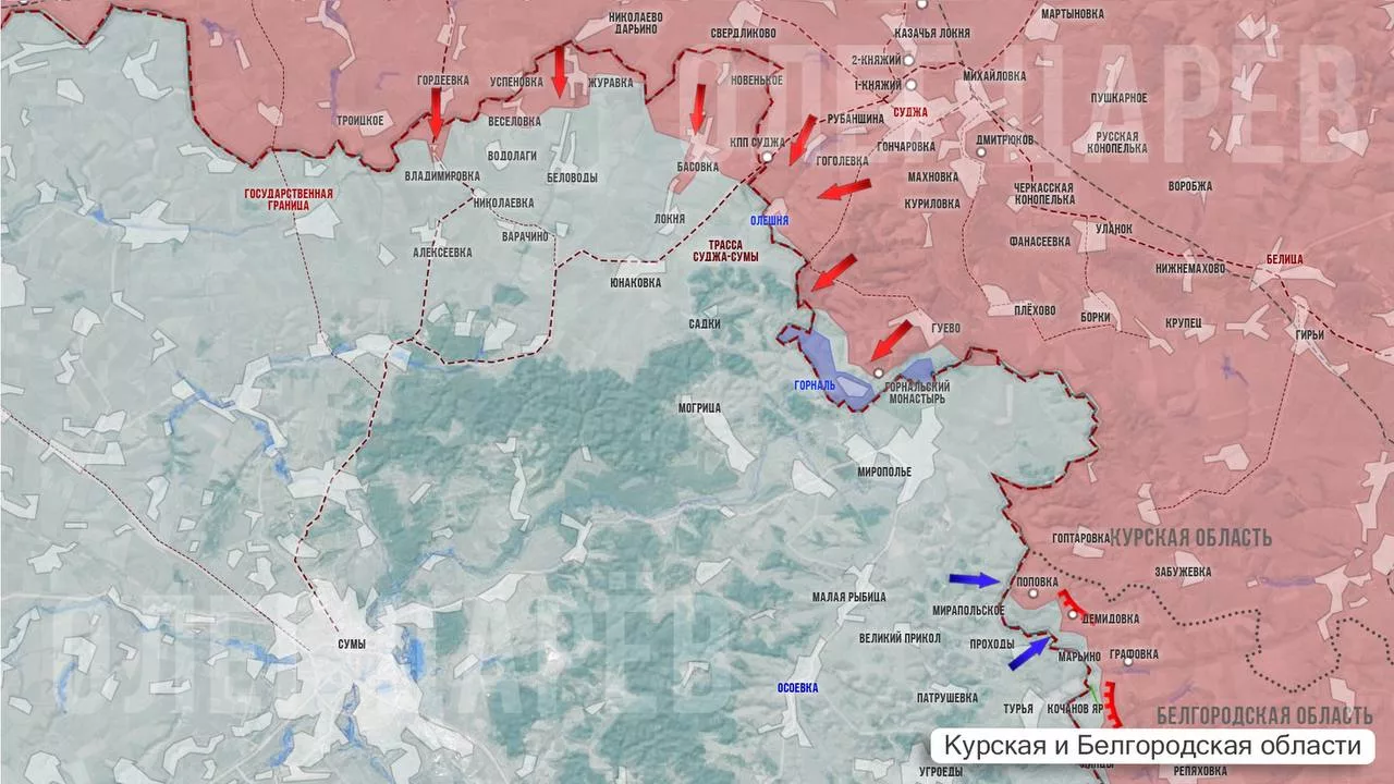 Политик и военный блогер Олег Царев сообщает о значительных успехах российских войск в приграничных районах. За последние сутки подразделения ВС РФ полностью освободили территорию Горнальского монастыря после 10 дней ожесточённых боёв, где противник потерял более 200 человек.
