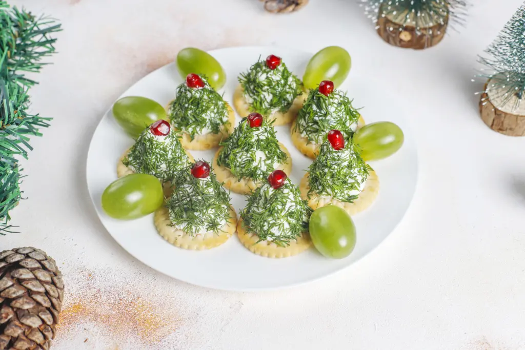 - Ингредиенты: Твёрдый сыр (чеддер, гауда), мягкий сыр (бри, камамбер), зелёный и красный виноград без косточек.