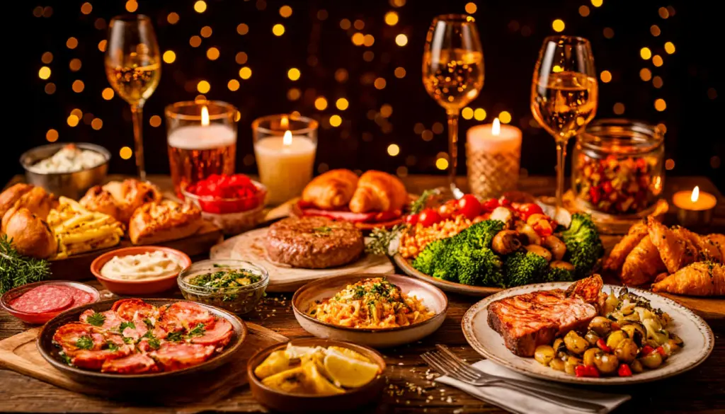 - Крепкий алкоголь и фламбе: Блюда, подожженные при подаче, и крепкие напитки могут создать энергетический дисбаланс вместо праздничного веселья.