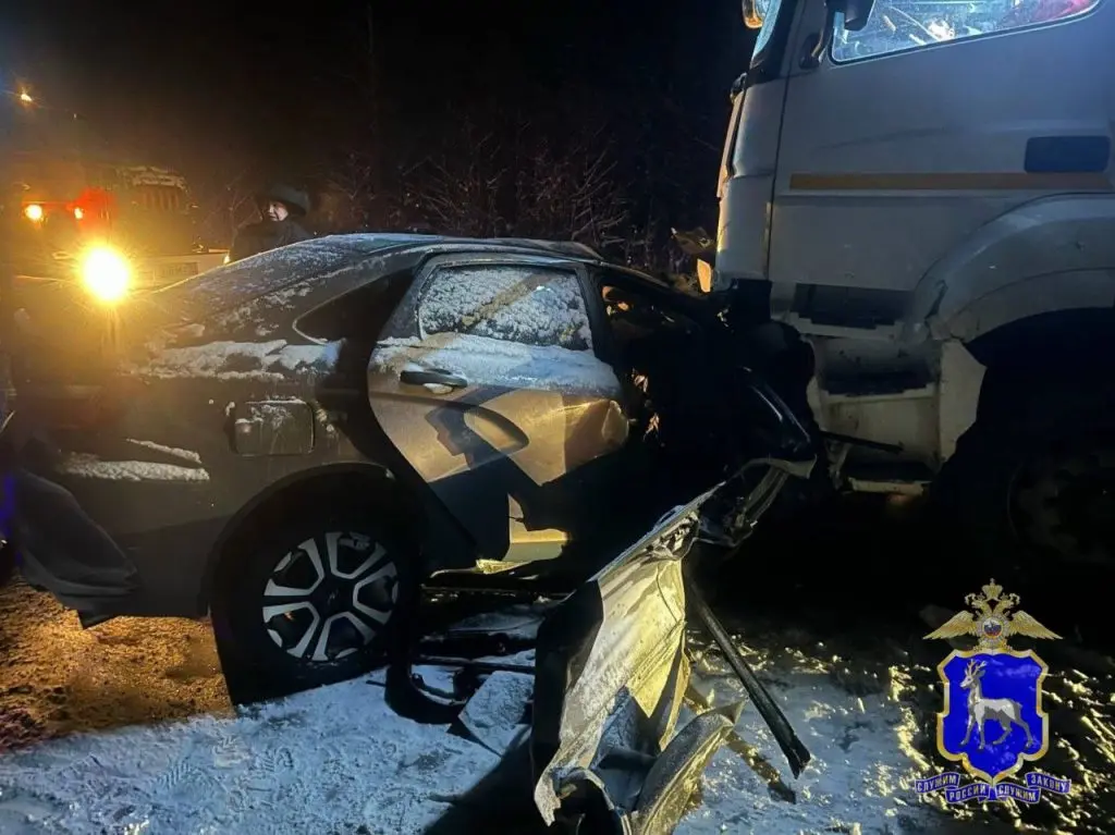 ДТП произошло вечером 26 декабря в Шенталинском районе. Согласно предварительным данным Госавтоинспекции, приблизительно в 21:40 легковой автомобиль LADA Vesta двигался по трассе Шентала — Азеево в сторону села Черемшан (Республика Татарстан). На втором километре дороги автомобиль выехал на встречную полосу в разрешенном месте, где произошло столкновение с КамАЗом.