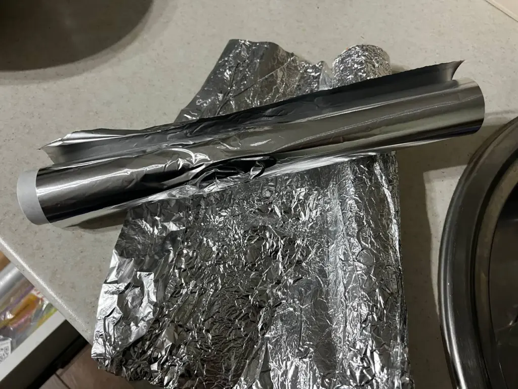 - Оберните чистую и сухую банку с закатанной крышкой в один слой пищевой фольги (матовой стороной внутрь, глянцевой — наружу).