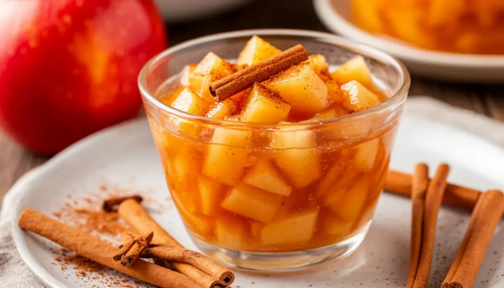 - Сварите основу: в кастрюлю налейте 1,5 литра воды, добавьте яблоки, палочку корицы (или ½ ч. л. молотой), цедру одного мандарина или апельсина, а также 2–3 гвоздики или щепотку кардамона.