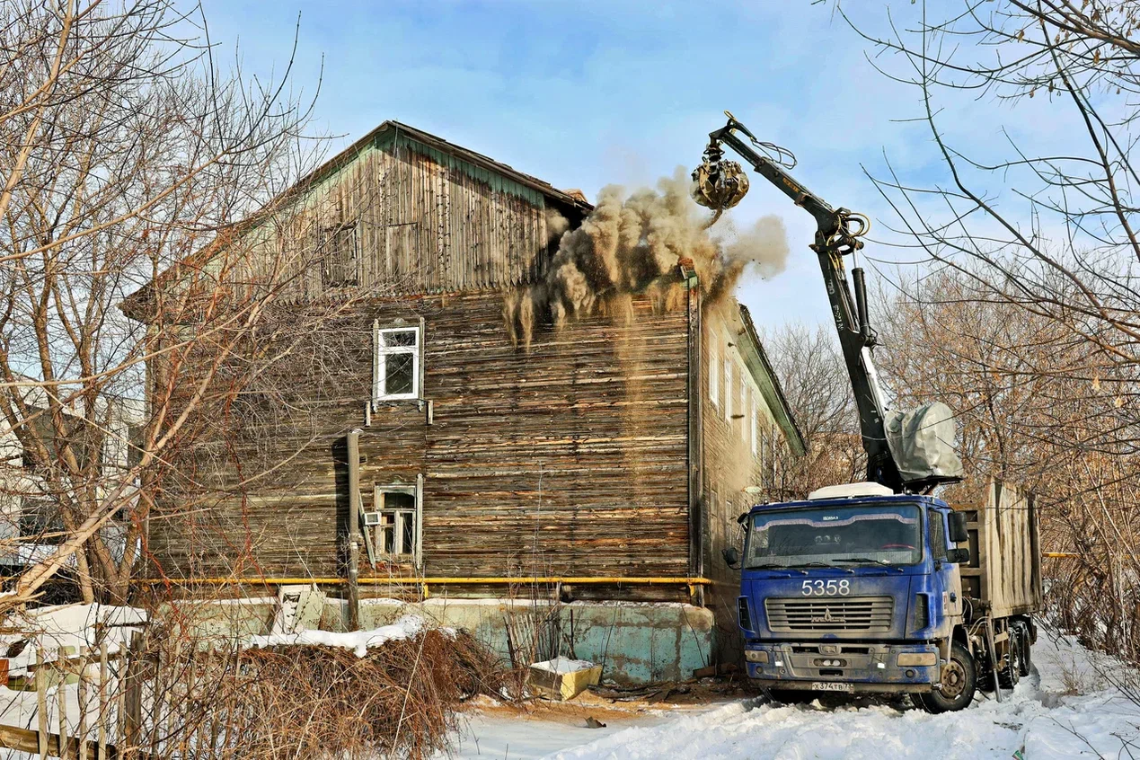 Для проведения работ используются ломовоз, экскаватор-погрузчик и самосвал. Отходы будут вывезены на полигон для строительных материалов. Ожидается, что процесс демонтажа займет около двух недель.