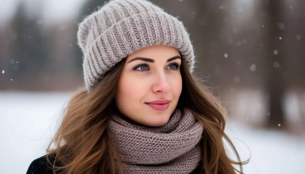 - Цветовая палитра: Тёмные шапки (чёрные, тёмно-серые) могут подчеркнуть усталость и бледность кожи. Освежающий эффект дают светлые, мягкие оттенки: