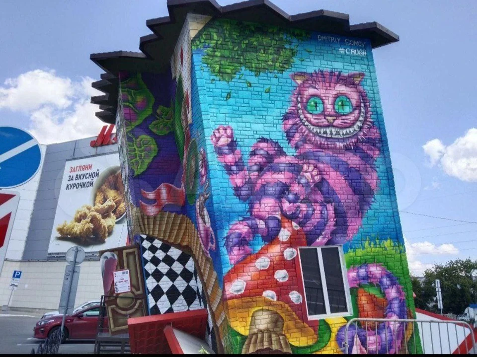 Аттракцион находится на Московском шоссе, 81Б. Площадь помещения составляет 62 квадратных метра, объект является собственностью. Фасад здания оформлен росписью с изображениями героев сказки «Алиса в Стране чудес». Помещение используется для трех направлений деятельности: выставочная экспозиция «перевернутый дом», квесты и фотостудия.