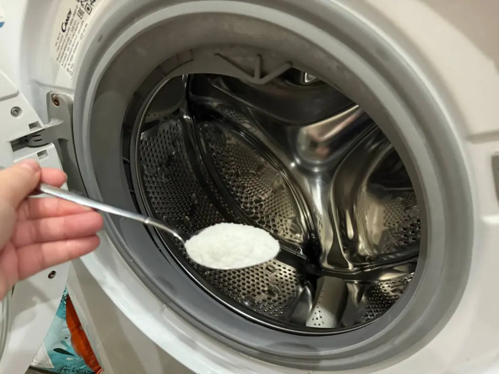 Когда основной цикл завершится, равномерно распределите ложку лимонной кислоты прямо по влажным полотенцам в барабане. Включите режим дополнительного или короткого полоскания.