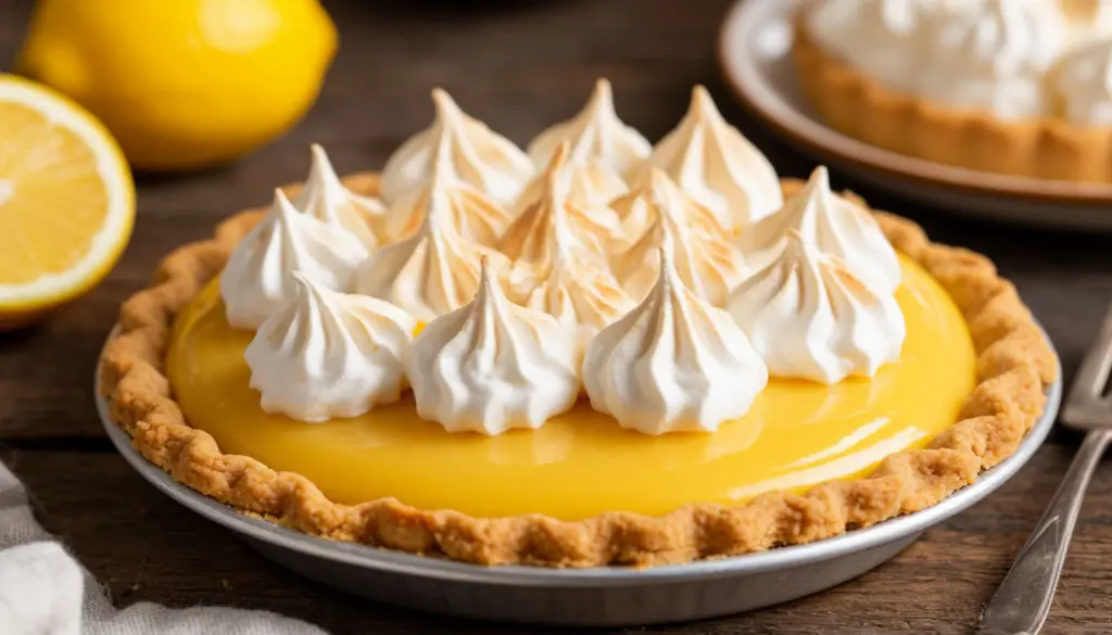 Этот пирог сочетает в себе три идеальных текстуры: рассыпчатое песочное тесто, нежный лимонный заварной крем и лёгкую воздушную меренгу.