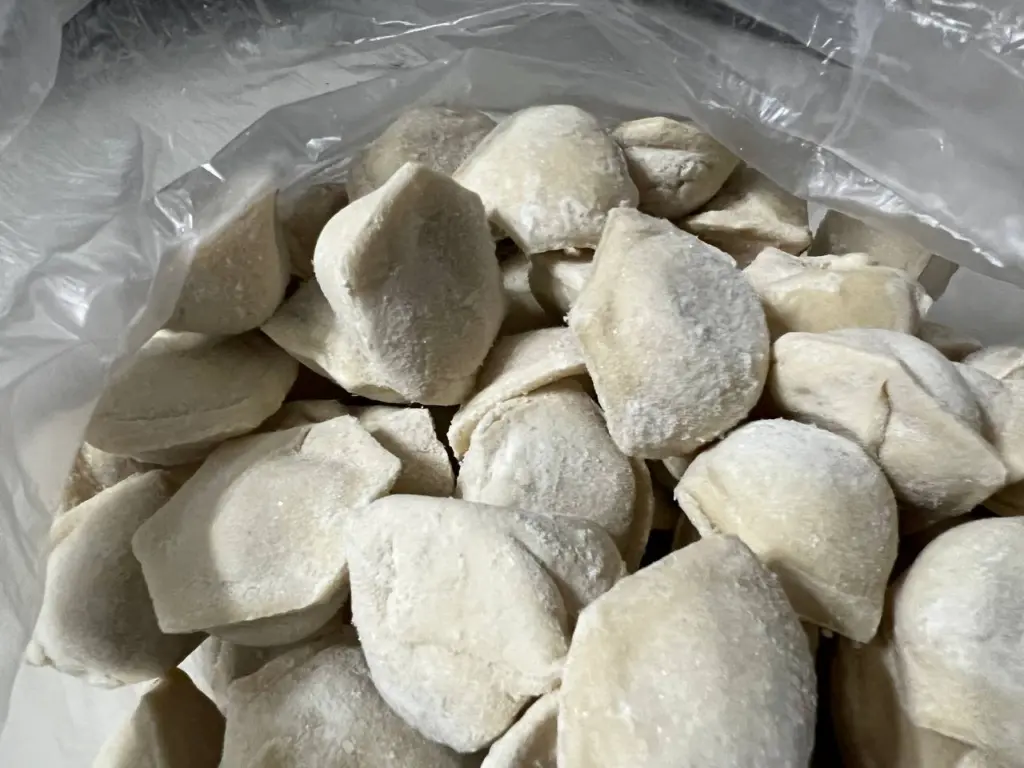 - Лепка. Не перегружайте начинкой — достаточно чайной ложки. Края защипывайте тщательно, чтобы пельмени не разошлись в кипятке.