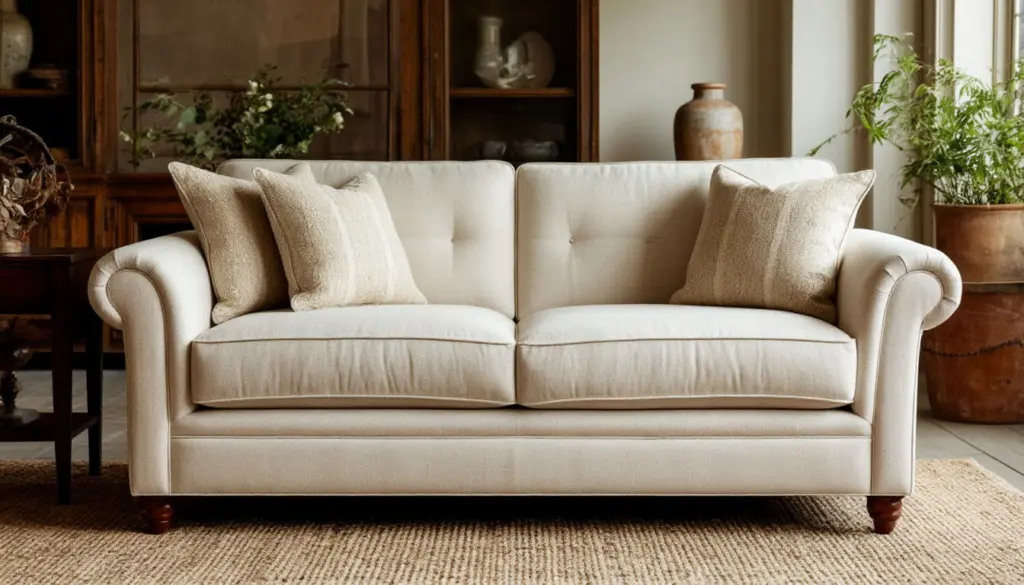 Начните с борьбы с пылью, которая скапливается в швах и складках. Идеальный помощник — насадка-щётка для пылесоса. Альтернатива — старый, но гениальный способ с влажной простынёй, описанный выше. После такой «встряски» дайте мебели полностью высохнуть, проветрив помещение.