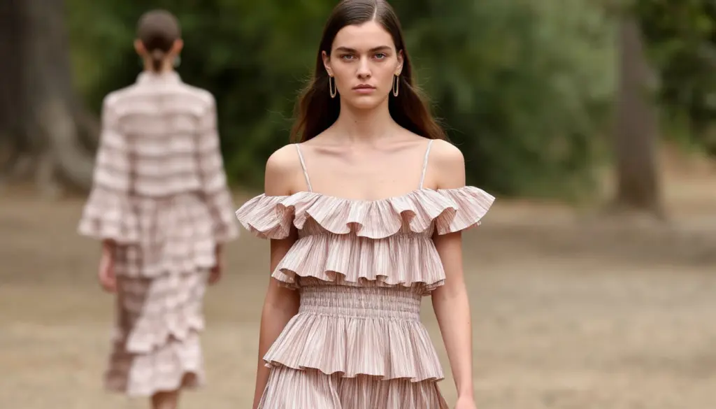 Этот приём — лучший союзник в создании идеальных пропорций. Умело расположенные складки на талии, бёдрах или плечах не просто украшают, а визуально корректируют фигуру, делая образ изысканно-комплиментарным.