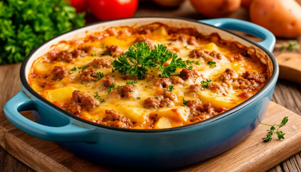 Попробуйте приготовить это восхитительное блюдо — нежную запеканку, где слои воздушного картофельного пюре сочетаются с ароматной мясной сердцевиной и золотистой сырной корочкой. Это идеальное решение для обеда или ужина, которое соберет за столом всю семью. Процесс готовки не отнимет много сил, а результат гарантированно порадует.